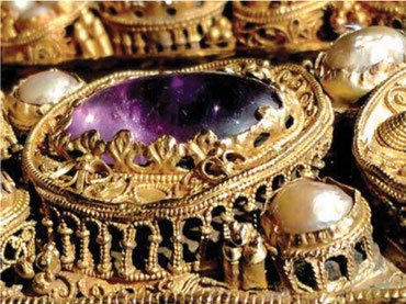 Im Bild ein Ausschnitt aus einem Reliquiar Heinrich II aus dem 11. Jahrhundert (Münchener Residenz)